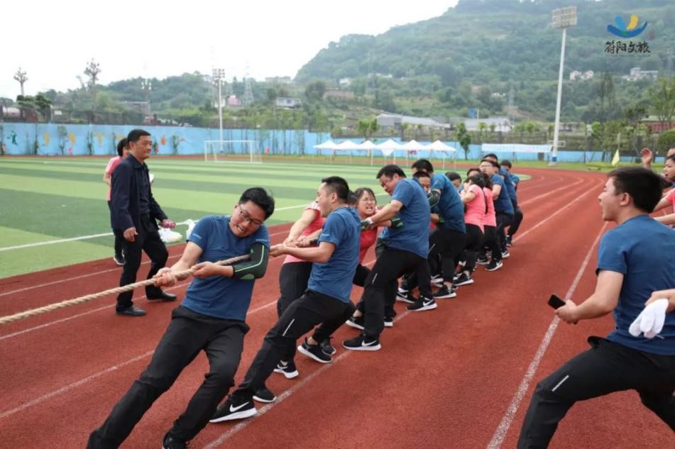 隨著(zhù)哨聲一響,我們雙手握緊長(cháng)繩,咬緊牙關(guān)向后拉,為了把握節奏形成合力,心里默念著(zhù)“一二、一二”,場(chǎng)上一時(shí)僵持難下,但難敵強悍對手,第一局廣源達勝。這仿佛符合多數人的預期,但我們怎會(huì )被拘于這固定印象,越戰越勇才是符陽(yáng)文旅人的風(fēng)姿。第二場(chǎng)對決比第一場(chǎng)更加艱難,一開(kāi)場(chǎng)廣源達占據絕對優(yōu)勢,我們險被拉到了終線(xiàn),全憑一口氣死撐,牙關(guān)咬緊,身體后傾,不斷降低重心,腳步穩扎,做著(zhù)別人眼里無(wú)畏的掙扎。一定不能越線(xiàn)!在超高壓下堅持了十余秒,那一刻拼的就是韌勁!一群瘦弱的文旅人憑著(zhù)一股拼勁慢慢把賽場(chǎng)主動(dòng)權掌握在了自己手中,每向后移動(dòng)一步,心里的勁更足了,如荒漠迷路的旅者遇見(jiàn)了綠洲,我們也尋得了力量之源。當現場(chǎng)歡呼聲響起時(shí),我們已癱坐一片,不敢置信,我們贏(yíng)啦!