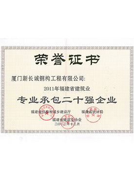 2011年福建省建筑業(yè)專業(yè)承包二十強企業(yè)證書
