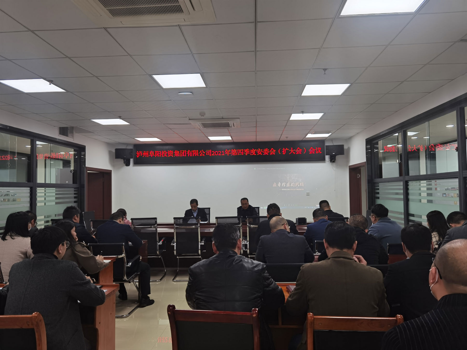 2021 年 10月28日,瀘州阜陽(yáng)投資集團有限公司召開(kāi)第四季度安委員會(huì )(擴大會(huì ))會(huì )議,會(huì )議由集團副總經(jīng)理胡天華主持,總經(jīng)理任東財出席,各下屬公司、代管公司安全分管領(lǐng)導及安全員參加。