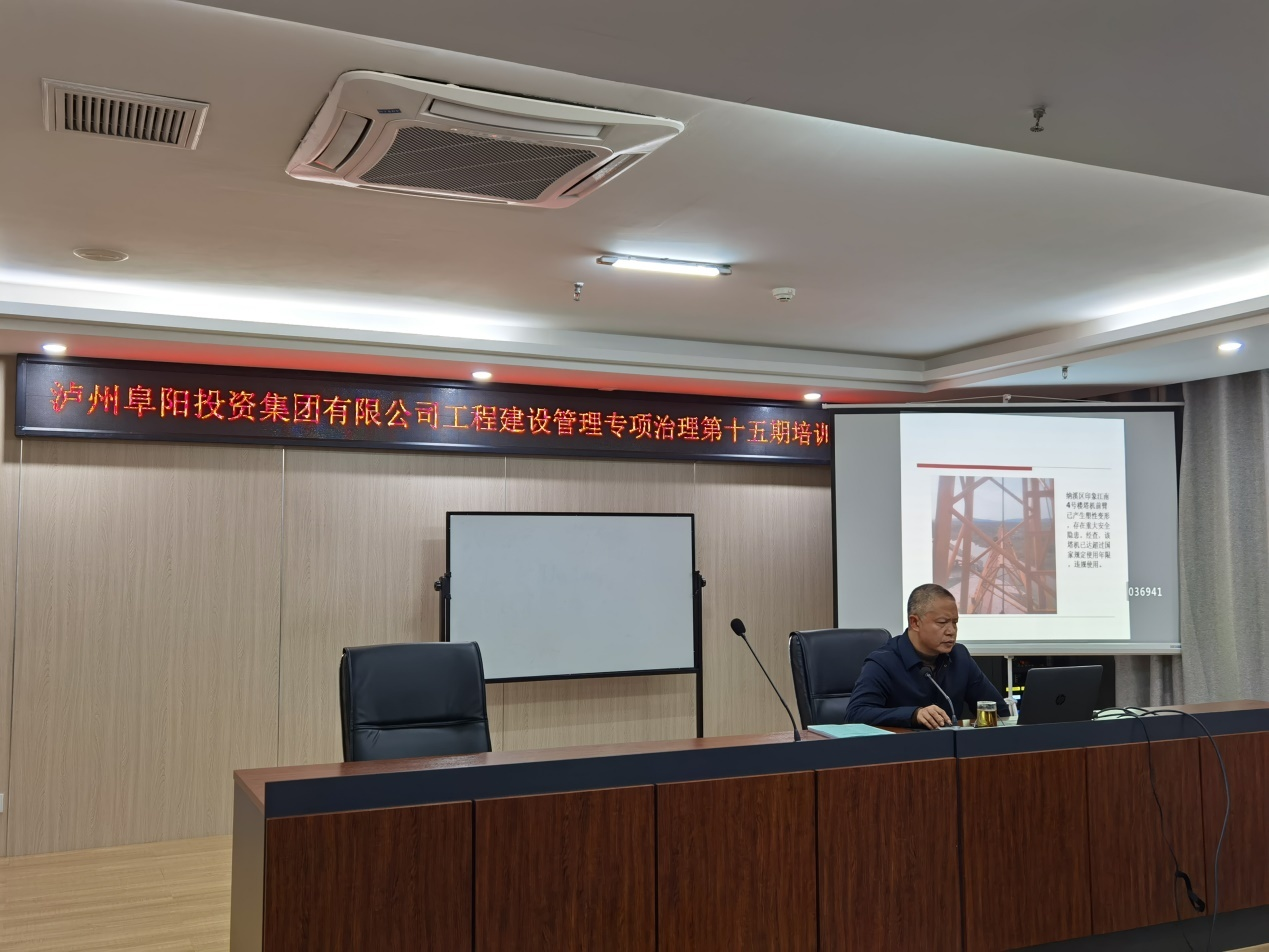 2021 年 10月28日,瀘州阜陽(yáng)投資集團有限公司開(kāi)展工程建設管理專(zhuān)項治理第十五期培訓,培訓會(huì )議由廣源達公司董事長(cháng)張學(xué)彬主講,各級公司工程項目管理人員參加。